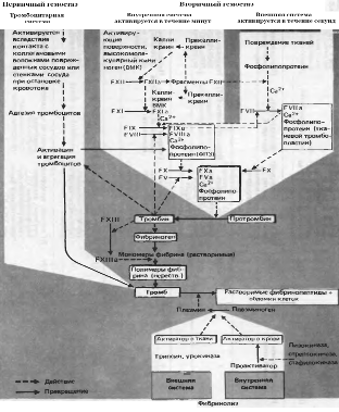 Рис. 1. Схема свёртывания крови и фибринолиза. ФП 3 – тромбоцитарный фактор 3 (по Циммерману, 1996)