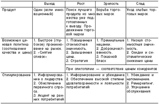 · Нужно выбрать правильный момент для выхода на рынок с новым продуктом. Кроме того, для компании, предлагающей потребителям различные продукты, желательно, чтобы эти продукты находились на разных стадиях жизненного цикла.