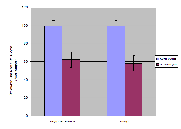 2) Проанализировать изменение относительной массы надпочечников и тимуса у контрольных и опытных крыс после долгосрочной изоляции.