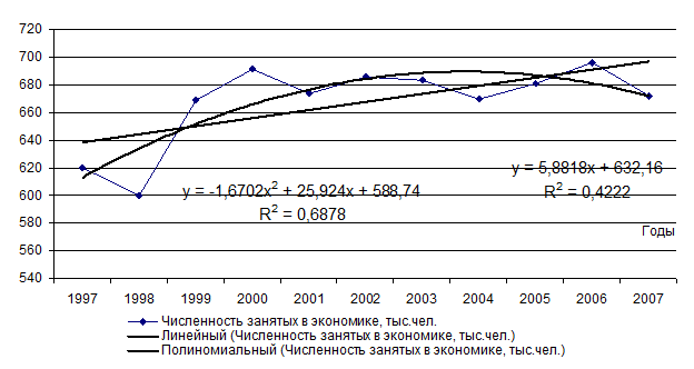 3.4. Выявление основной тенденции численности занятого населения Ярославской области методом аналитического выравнивания. 27
