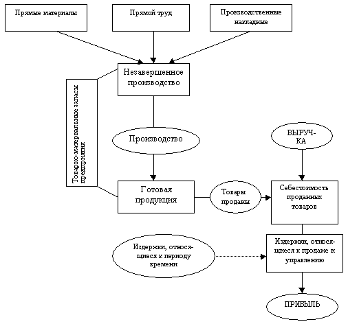 Признаком разделения издержек согласно данной классификации является способ, с помощью которого издержки относятся на себестоимость проданных товаров. Издержки первой группы включаются в себестоимость проданных товаров только тогда, когда готовая продукция, в состав которой вошли эти издержки, продана. До момента продажи эти издержки в составе товарно-материальных запасов предприятия представляют собой его активы, т.е. они материализованы в составе незавершенного производства или готовой продукции и хранятся на складе. Издержки второй группы включаются в отчет о прибыли, т.е. учитываются при расчете прибыли предприятия, в течение того периода, когда они были фактически понесены. Характерным примером второй группы являются издержки, связанные с общим управлением предприятия.