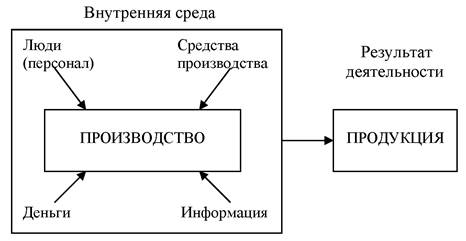 Внутренняя среда предприятия - это люди, средства производства, информация и деньги. Результатом взаимодействия компонентов внутренней среды является готовая продукция (работа, услуги) (рис. 1).