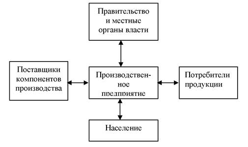 Внешняя среда, которая непосредственно определяет эффективность и целесообразность работы предприятия - это прежде всего потребители продукции, поставщики производственных компонентов, а также государственные органы и население, живущее в окрестностях предприятия (рис. 2).