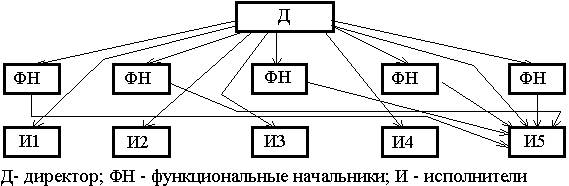 На рис. административные связи функциональных начальников с исполнителями (И1—И4) такие же, как и для исполнителя И5 (они не показаны в целях обеспечения ясности рисунка).