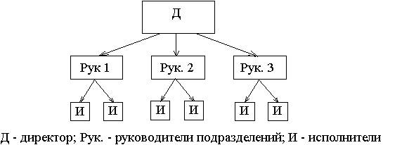 При ней линейные руководители являются единоначальниками, а им оказывают помощь функциональные органы. Линейные руководители низших ступеней административно не подчинены функциональным руководителям высших ступеней управления. Она применялась наиболее широко