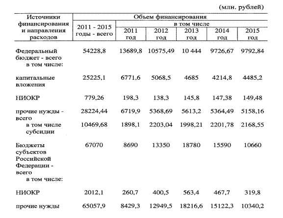 Ожидается, что объём финансирования Федеральной целевой программы развития образования на 2011-2015 годы из федерального бюджета составит 54,2 млрд. рублей, из бюджетов субъектов РФ 67,1 млрд. рублей, а из внебюджетных источников около 16,6 млрд рублей (в ценах соответствующих лет).