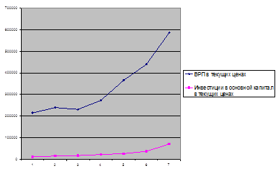 Зависимость между величиной инвестиций в основной капитал и величиной ВРП в текущих и сопоставимых ценах