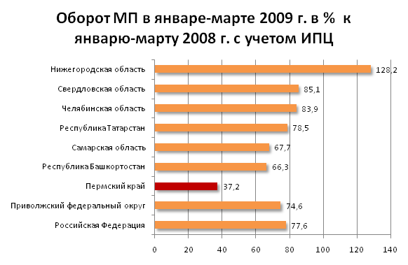 - рост/спад объема оборота малых предприятий в январе-марте 2009 г. по сравнению с январем-мартом 2008 г.;