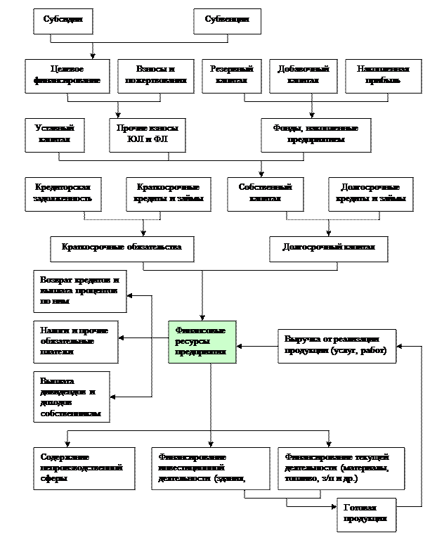 , схема «Источники и движение финансовых ресурсов предприятия».