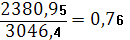 3663 х 0,65 = 2380,95