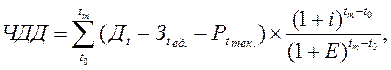 Чистый дисконтированный доход – накопленный дисконтированный эффект за расчетный период. ЧДД рассчитывается по формуле: