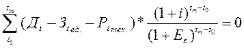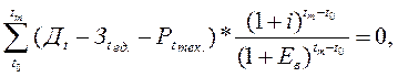Внутренняя норма доходности является решением уравнения, которое имеет вид: