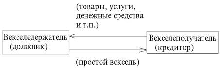 вексель представляет собой письменный документ, содержащий простое и ничем не обусловленное обязательство векселедателя уплатить определенную сумму денег в определенный срок и в определенном месте векселедержателю или по его приказу другому лицу. В простом векселе с самого начала участвуют два лица: векселедатель, который сам обязуется уплатить по выданному векселю; векселедержатель, которому принадлежит право на получение платежа по векселю [11].