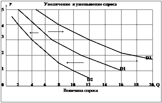Количество блага должно было бы сократиться с Q1 до Q2, но спрос возрос с Q1 до Q3.