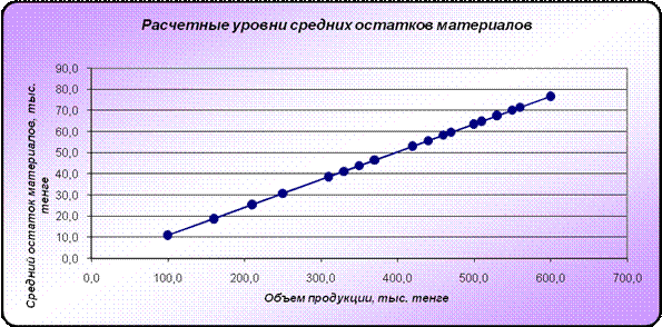 Прогноз среднего запаса материалов для предприятия с объемом выпуска продукции 310 тыс. тенге: