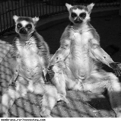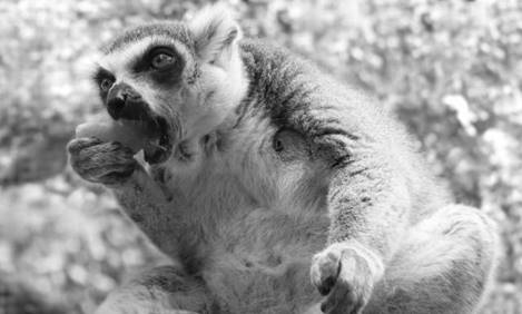 Глаза лемуров сидят по бокам морды, а не обращены вперед, как у обезьян и человека. Лемур рассматривает предметы обычно, то одним, то другим глазом.