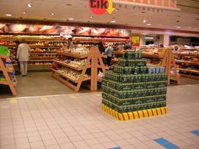 - такой вид выкладки эффективен - покупатели обращают внимание на содержимое тележек.