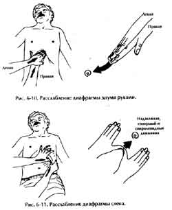 Она начала дышать спокойно после того, как я 15 минут поработал над ее областью желудка. Затем мягко, но глубоко я работал с нижней левой стороной ее грудной клетки. При этом она стала издавать громкие клокочущие звуки.