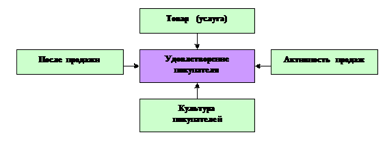 В работе «ThecustomerisKey» (Wiley, 1991) рассматривается совокупность факторов полезности, характеризующих степень удовлетворения покупателя (рис.5).