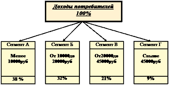 Рис. 2. Сегментация рынка холодильников по уровню доходов потребителей.