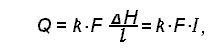 где Q – расход воды (количество фильтрующейся воды в единицу времени); k - постоянная величина для данной породы, характеризующая её водонепроницаемость (коэффициент фильтрации); F – площадь поперечного сечения потока; ΔН – напор или разность уровней в двух рассматриваемых сечениях; - длина пути фильтрации; I– гидравлический уклон.