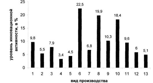 Рисунок 1. Инновационно-активные предприятия промышленности по видам экономической деятельности в 2007 г.