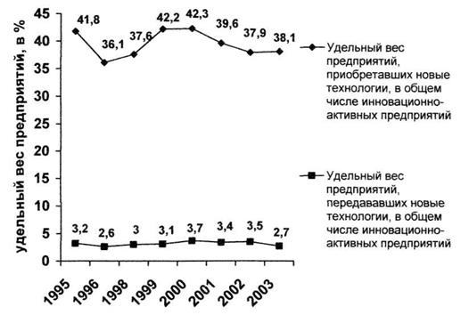Рисунок 2. Удельный вес предприятий приобретавших и передававших новые технологии