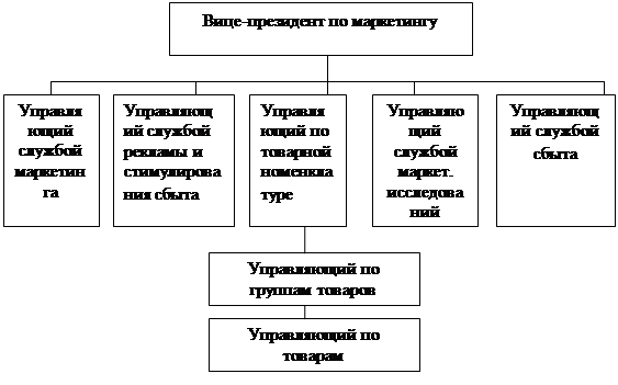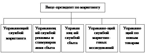 В реальной жизни имеется множество различных форм организации службы маркетинга, однако ограничимся рассмотрением лишь некоторых базисных организационных структур: