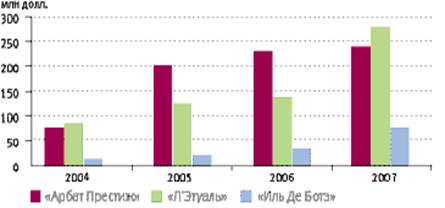 Итак, можно сделать вывод, что сеть Л’Этуаль в настоящий момент является лидером по количеству магазинов и объемам продаж.