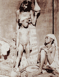 Постепенно их танец становился все стремительнее, движения - сладострастнее, жесты -зазывнее, певцы запели громче, к альмеям присоединился шут и, став в центре, начал принимать непристойные позы; паяц и альмеи, возбужденные пением и музыкой, вошли в экстаз. Их голоса уже заглушали музыку, виртуозные исполнительницы пели сладострастную песню и между четырьмя женщинами и их партнером разыгралась сцена, напоминающая борьбу вакханок с сатиром. Наконец, растрепанные, тяжело дыша, они кинулись нам, обвивая трепещущими руками, как змеи, проскальзывая под наши широки восточные одеяния...