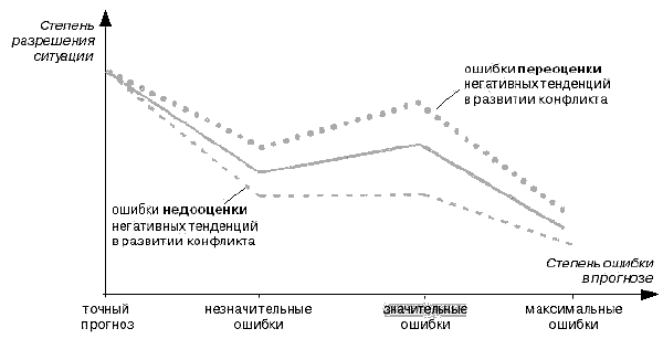 Вредна не только недооценка, но и переоценка существующего противостояния. В этом случае предпринимаются усилия гораздо большие, чем это действительно необходимо. Переоценка конкретного конфликта или перестраховка в отношении возможности конфликтного инцидента может привести к обнаружению конфликта там, где его в действительности нет.