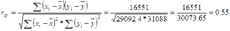 Связь между площадью торговых помещений и товарооборотом прямая и равна 55%. С ростом торговой площади на 1 кв. м., товарооборот в среднем увеличится на 23 тыс. руб.