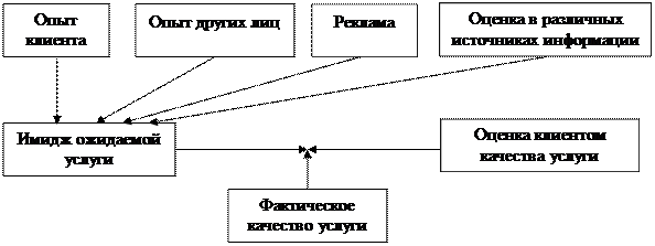Итак, клиент, оценивая предоставляемую услугу. Сравнивает ее фактическое качество со своими ожиданиями. Как правило, потенциальный потребитель услуги осознанно обращается именно к данному производителю услуг. В его сознании под действием собственного опыта или опыта других лиц, рекламы и оценок в различных источниках информации создается определенный имидж ожидаемой банковской услуги[1].