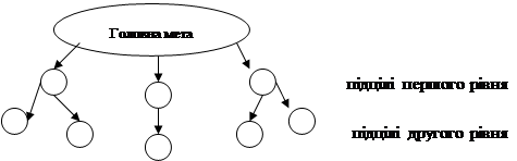 „Дерево цілей” – ієрархічна деревоподібна структура, яку отримують поділом загальної цілі на підцілі, а їх, у свою чергу, на детальніші складові — нові підцілі, функції тощо (див. „дерево цілей” на рис. 2.3). При цьому головну ціль розміщують на найвищому рівні.