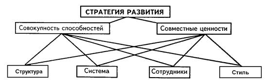 В долгосрочном плане отражается главным образом общая стратегия фирмы и описывается модель будущего с позиций весьма широкого подхода. В качестве единой стратегии развития фирмы может быть взята так называемая модель-7С, характеризующая механизм взаимодействия таких важнейших социально-экономических факторов, как структура, система, сотрудники, стиль, совместные ценности и совокупность способностей.