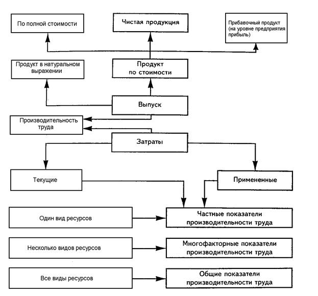 Система показателей производительности труда на предприятии содержит натуральные, трудовые и стоимостные измерители, а также частные, общие, многофакторные и другие, представленные в виде схемы на рисунке 2.1.