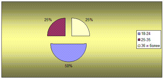 Вывод: Исходя из данных (50%) составляет возраст 18-24, (25%) это 25-35 и 36 и более.