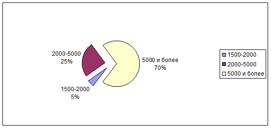Вывод: Анализ показал, что среднемесячный доход составляет у большинства 5000 и более (70%), (25% ) 2000-5000 и (5%) 1500-2000.