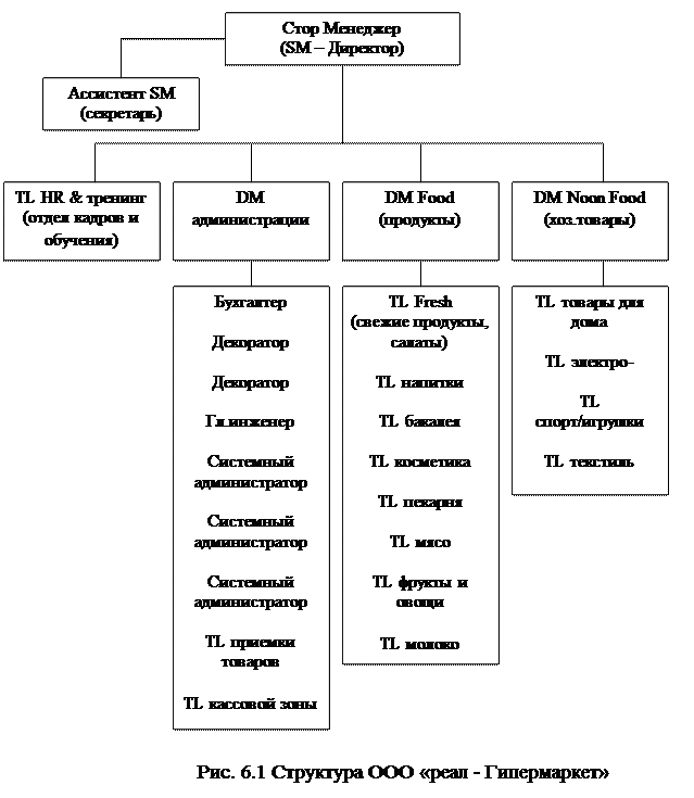 На рис. 6.1. представлена структура ООО «Реал - Гипермаркета».