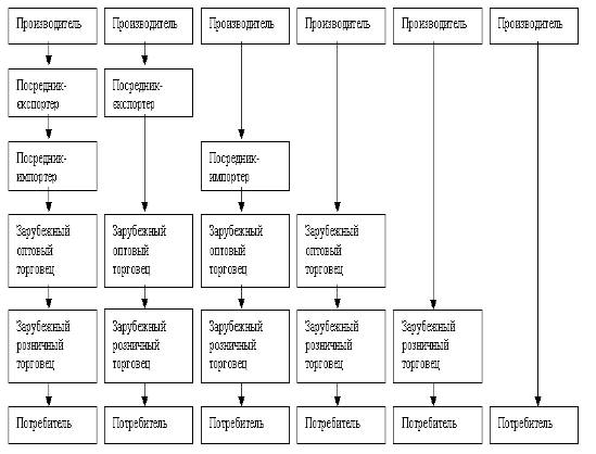 Чем уже канал, тем меньше участников сбыта. Международные каналы товародвижения выглядят, как правило, следующим образом (рис.1).