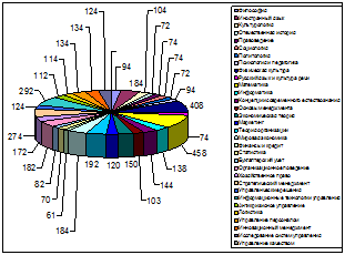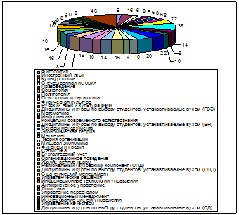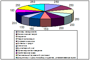При изучении государственного стандарта подготовки специалистов по специальности "Менеджмент организации" была рассчитана структура учебного плана