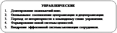 Успешное использование иерархических структур возможно в том случае, когда работники высших иерархических уровней выступают не в роли классических начальников, а в качестве координаторов, при этом подчиненные должны быть инициативными и предприимчивыми. При таком распределении ролей происходит перемещение предпринимательской инициативы из высших уровней внутрифирменного управления в низшие слои организации. Создается предпосылка того, что сотрудники будут готовы взять на себя предпринимательскую ответственность, а высший уровень управления будет выполнять действительно координирующие функции.