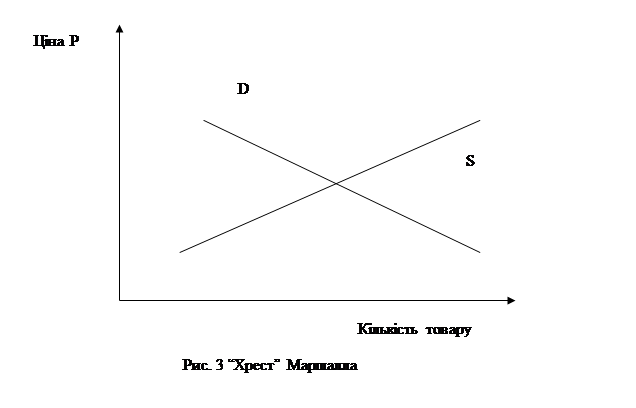 Якщо криві попиту та пропозиції зобразити на одному графіку, то ми одержимо знаменитий "хрест" Маршалла (рис.3)