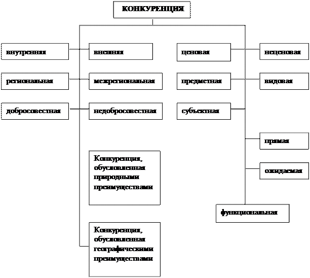 Предметная конкуренция проявляется в том случае, когда предприятия предлагают покупателям практически одинаковые товары (например, автомобили одного класса). Субъектная конкуренция возникает между фирмами, устойчивое положение которых на рынке обеспечивается выбранной сферой деятельности.