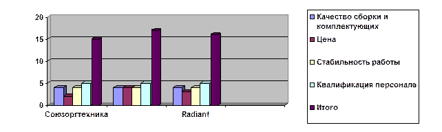 Оценив уровень конкурентоспособности фирмы «Союзоргтехника» по сравнению с фирмами «МЭЛТ» и «Премьер Компьютерс» мы увидели, что она по всем показателям приравнивается к основным конкурентам, кроме цены.