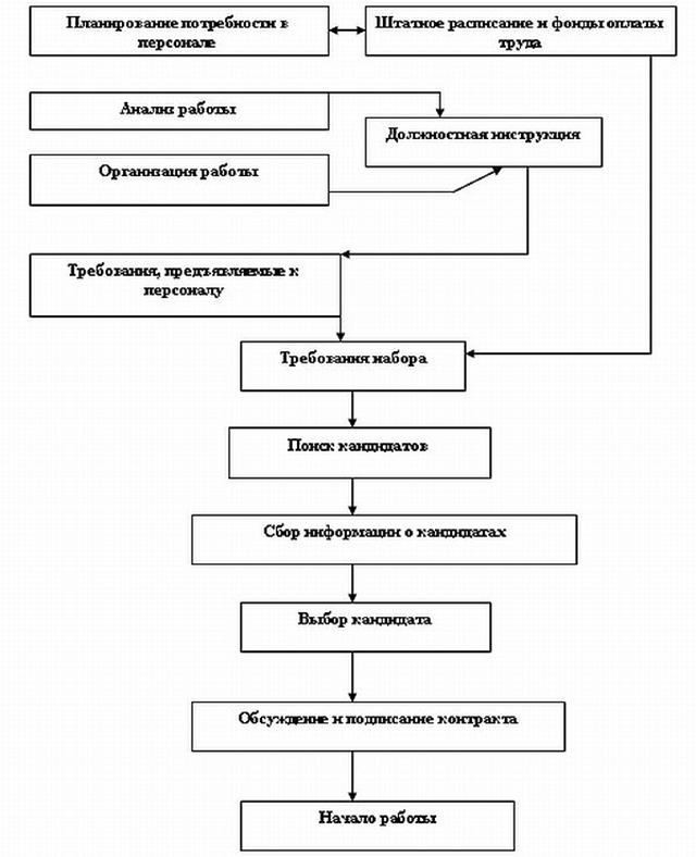Наем, отбор и прием персонала – набор и отбор кадров.