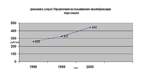 Динамика изменения затрат на оплату повышения квалификации персонала Центра возможно изобразить.
