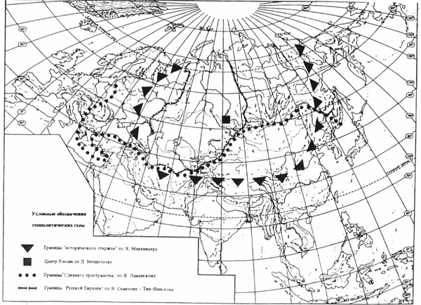 Выдвигавшиеся различными общественно-политическими силами явно нереалистичные мифологизированные и преувеличенно-романтические внешнеполитические концепции (например необходимость захвата Россией Константинополя) стимулировали у прагматически настроенной части научной элиты разработки соответствующих геополитических конструкций и схем. В этой связи рельефней начали определяться основные установки нового пространственно-политического подхода к военно-политическим и социально-политическим явлениям международной и внутригосударственной жизни.