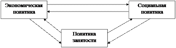 Политика занятости должна формироваться с учетом возможности трудиться разных категорий населения. Более пристальное внимание следует уделять группе риска, т.е. занятости женщин, молодежи, инвалидов и т.д., стабильности получения ими доходов, исключению дискриминации в этих вопросах. Последнее относится также к мигрантам, людям иной расы, цвета кожи, религии, политических взглядов и социального происхождения. Поэтому такую политику, как относительно самостоятельную можно осуществлять только при тесном взаимодействии, координации экономической и социальной политики по обеспечению полной, продуктивной и свободно избираемой занятости. Но последняя должна быть и эффективной. Все виды политики взаимосвязаны между собой, оказывают воздействие друг на друга (Рисунок 2.1).