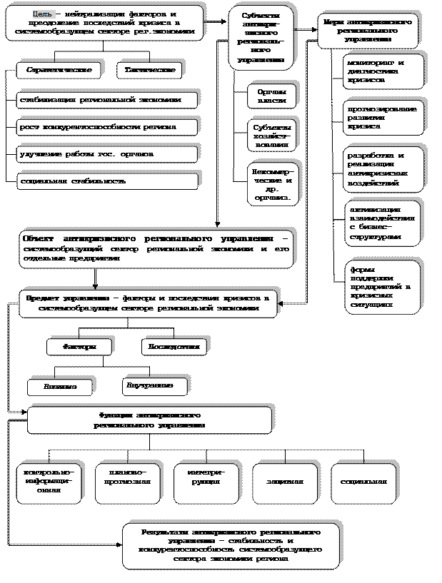 выступает система антикризисного регионального управления, обладающая способностью предотвращать и преодолевать кризисные ситуации в системообразующей подсистеме региональной экономики.